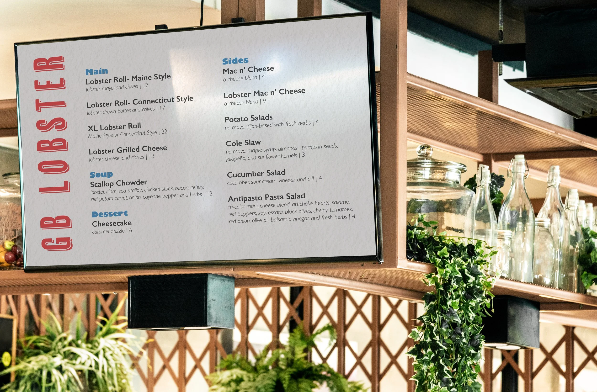 At first, my partner and I worked separately, but together to design two distinct branding options for Anthony. When we presented our work to the owner, he chose to move forward with my design concept. With my design concept in mind, my partner and I collaborated to create a cohesive branded environment for our client. We built an identity program, application materials, and a new interior branded restaurant environment for 'GB Lobster'.