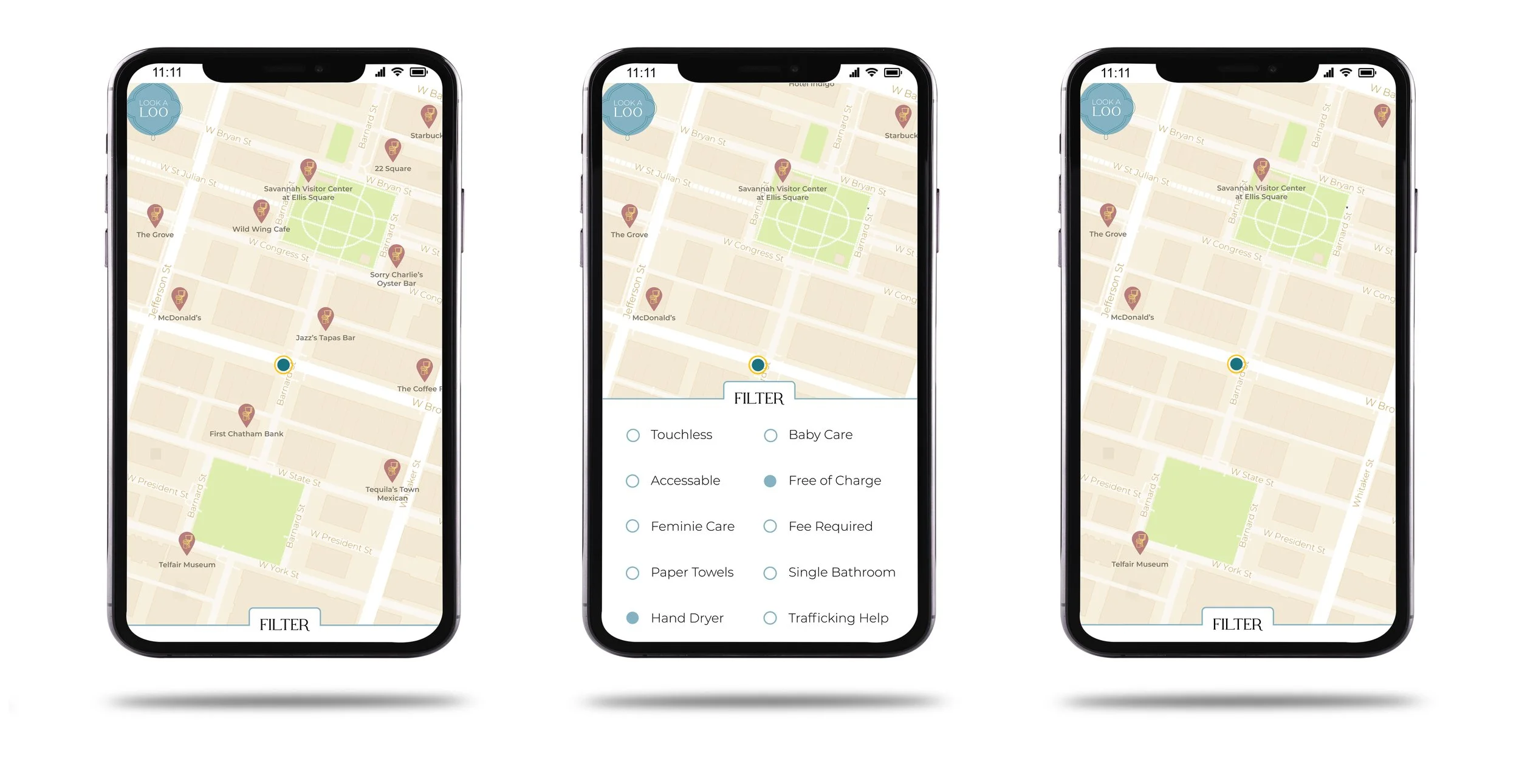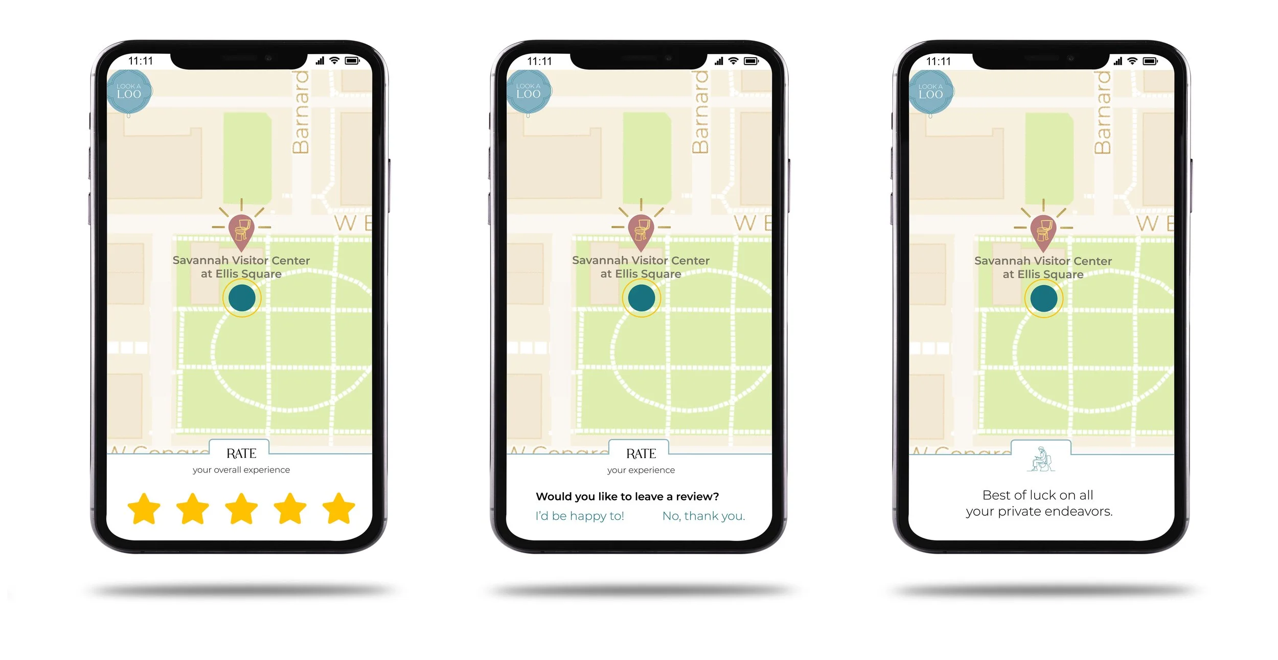 The visual style is clean with some cheeky and discrete elements like splashing poop ornamenting the section titles under each location. The design is clear and easy to read with plenty of space between information, so that the app does not feel cluttered and is easy to navigate. I wanted the experience to be simple and user friendly to help relieve the user’s already stressful state.